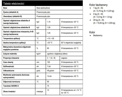 Więcej na temat żywicy w karcie technicznej. W Pliku DODATKOWE INFORMACJE.