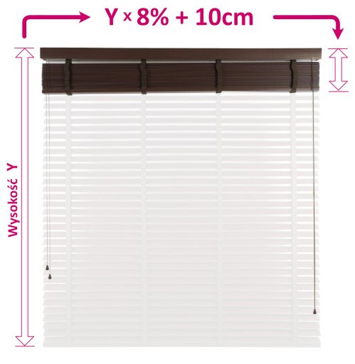 ➡️ Czyli np. dla wnęki o wysokości 100 cm zamów żaluzję o długości 118 cm, bo 100 cm + 8% + 10 cm = 118 cm.