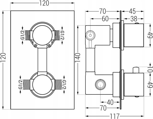 - Podłączenie: 2x wejście 1/2" oraz 2x wyjście 1/2"