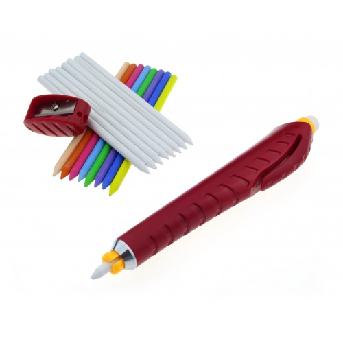 Zestaw wkładów krawieckich w blistrze z automatycznym uchwytem (działa jak ołówek na wymienne rysiki) + 16 wymiennych rysików (8 szt. białych i 8 szt. kolorowych) wraz z temperówką. Całość zapakowana w blister, a rysiki dodatkowo w plastikowe, otwierane pudełko. Wkłady można łatwo zaostrzyć pozwalając nanieść precyzyjne oznaczenia technologiczne na wszelkiego rodzaju materiałach, tkaninach, skórze, papierze itp. doskonały przy szyciu patchworku i pikowaniu. Miękkie i lekkie prowadzenie po powierzchni pozostawia wyraźne i cienkie znakowanie, które jest łatwe do usunięcia korektorem (umieszczonym w przycisku ołówka), szczoteczką lub wytrzepać. Wszystkie elementy zestawu widoczne na zdjęciach.