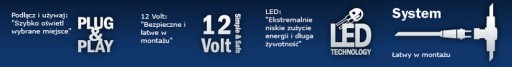 Prostota instalacji i bezpieczeństwo (12Volt) tego systemu oświetlenia sprawia, że jest ono dostępne dla wszystkich. Samodzielnie zaplanujesz i zamontujesz wszystkie elementy systemu. Również inne istniejące systemy 12V łatwo połączysz z naszym systemem. Wszystkie złącza i transformatory są wilgocioszczelne (klasa IP44) i przeznaczone do zastosowania na zewnątrz. Nasze produkty spełniają wymogi wszystkich europejskich norm. Część naszym produktów jest przetestowana i przygotowana do ciągłej pracy pod wodą (klasa IP68). Nasze wyroby wykonane są z najwyższej jakości materiałów, a ich powierzchnia odporna jest na działanie UV. Dzięki temu nasze wyroby posiadajągwarancję, z wyłączeniem źródeł światła.