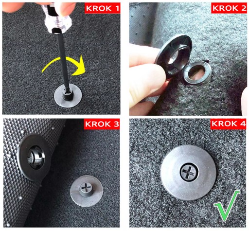 ✅ŁATWY MONTAŻ - spinki składają się tylko z 3 elementów i zamontujesz je w 4 krokach! Z łatwością wkręcają się w dywan. Wystarczy je zakręcić aby trzymały dywaniki.