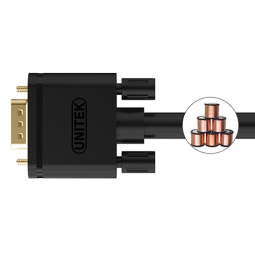 Przewody VGA Uniteka wykonane są w 100% z miedzi, mają pozłacane końcówki i charakteryzują się najwyższymi parametrami. Wbudowane ferrytowe bezpieczniki chronią przed EMI, RFI i innymi zakłóceniami oraz stabilizują sygnał. Poszczególne wiązki są wielokrotnie ekranowane metalową i aluminiową folią, a wszystko to po to, aby obraz był czysty, wyraźny i bez żadnych zniekształceń. Przewody VGA Unitek potrafią czysto przenosić obraz Full HD o max. rozdzielczości 1920x1080P.