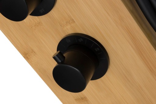 Corsan Bali posiada jedno pokrętło odpowiedzialne za regulację ciśnienia i temperatury wody oraz jedno pokrętło funkcyjne. Pokrętło funkcyjne umożliwia przełączanie pomiędzy opcjami takimi jak deszczownica, hydromasaż i słuchawka prysznicowa. W przypadku tego drewnianego panelu prysznicowego można korzystać z jednej funkcji w jednym czasie.
