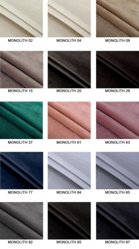 Widoczna na ekranie monitora kolorystyka może nieznacznie odbiegać od oryginalnej kolorystyki tkanin z powodu różnych rodzajów monitorów oraz ich skalibrowania.