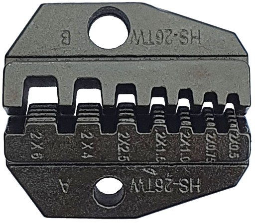 - Zestaw składa się ze szczypiec z automatycznym, regulowanym mechanizmem zapadkowym oraz z wymiennych matryc dopasowanych do pięciu rodzajów złączy elektrotechnicznych. Wymiana matryc odbywa się za pomocą odkręcania.