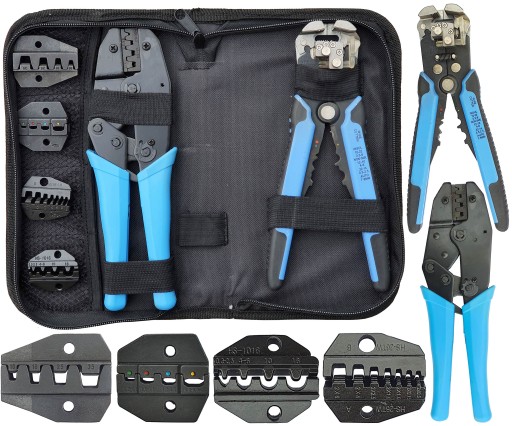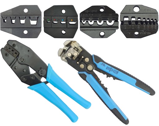 SZCZYPCE Z WYMIENNYMI 5 MATRYCAMI DO ZACISKANIA KONEKTORÓW + WIELOFUNKCYJNY ŚCIĄGACZ DO IZOLACJI