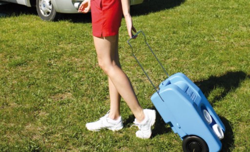 Przenośny 40-litrowy zbiornik na ścieki z wygodnym uchwytem i dwoma dużymi kółkami, które ułatwiają transport nawet na żwirze. Zbiornik jest wyposażony we wskaźnik poziomu i zawór odpowietrzający. W zestawie adapter kątowy 45° do rozładowania.