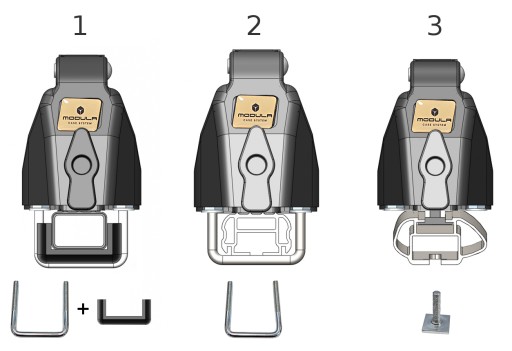 Montaż sprzętu zimowego odbywa się poprzez umieszczenie go pomiędzy dwoma elastycznymi gumowymi szczękami. Uchwyt wyposażono w zabezpieczenie antykradzieżowe w postaci zamka z kluczem.