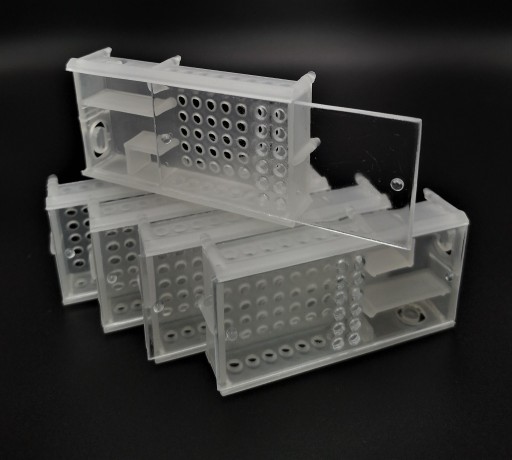 Klateczka która mieści matkę wraz z kilkoma robotnicami. Posiada dobrą wentylację zapobiegającą uduszeniu się matki wewnątrz klateczki oraz komorę na pokarm umożliwiający wysyłkę na duże odległości.