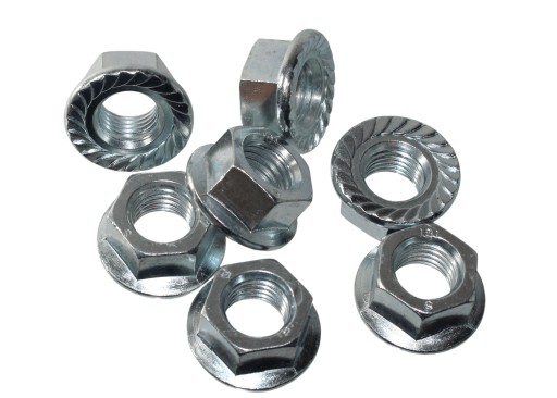 Nakrętki kołnierzowe zapobiegają samoczynnemu odkręceniu się elementu poprzez zwiekszenie docisku złącza oraz dodoatkowemu zabezpieczeniu w postaci ząkowanej powieszchi kołnierza.
