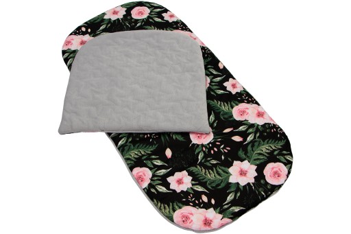 - Dzięki zastosowaniu wszytych gumek wkładka rozciąga się i pasuje do większości gondoli o wymiarach miedzy 75 a 100 cm długości
