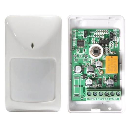 Alarm obsługuje czujki przewodowe jak i bezprzewodowe. W tym zestawie są czujki przewodowe.