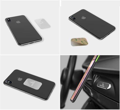 Do zestawu dołączona jest stalowa płytka, którą należ zamocować na obudowie telefonu za pomocą mocnej dwustronnej taśmy bądź wsadzić ją pod etui.
