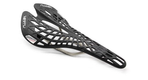 Ultralekkie siodełko rowerowe VERTU Spyder wykonane z polimeru oraz aluminium. Niesamowity design, wzorowany na legendarnym siodle Tioga Spyder Twin Tail. Zawiera 40 otworów obniżających wagę oraz poprawiających wentylację. Siodło bardzo elastyczne, mimo swojej budowy komfortowe.
