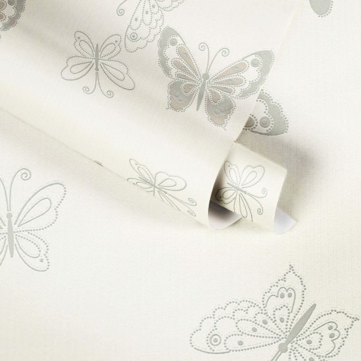 Lekko wypukłe wzory - motyle są szare i szaro-beżowe;
