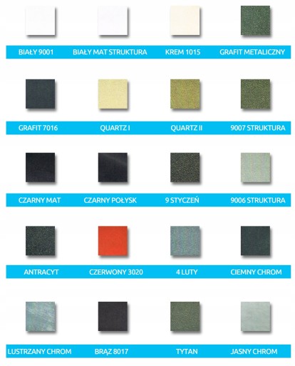 Grzejnik może być wykonany w innym kolorze z palety RAL za dopłatą (dostępne kolory do zobaczenia na pozostałych aukcjach). Poniżej paleta dostępnych kolorów: