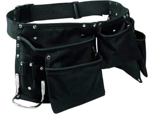 Tekstylny jednoczęściowy pas na gwoździe i metalową pętlą na narzędzia, dwukieszeniowy z paskiem, max. nośność 5 kg