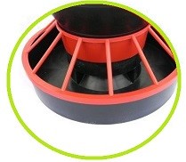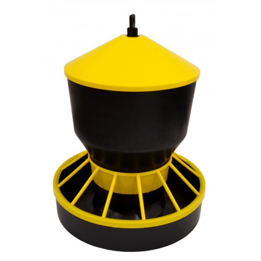 Karmnik pięcioelementowy składający się z podstawy, zasobnika na paszę, wieka, kratownicy z podziałką oraz palik z gwintem i uchwytem z przeznaczeniem dla drobiu każdego gatunku. Miska z podziałką uniemożliwia wygrzebywanie karmy przez zwierzęta. Szerokość jest tak dobrana, aby zapewnić maksymalną stabilność nawet wtedy, gdy karmidło jest niepełne. Karmnik łatwo utrzymać w czystości, co zapewnia zdrowie hodowanych ptaków. Produkt w 100 % polskiej produkcji. Doskonała jakość wyrobu. Bardzo wytrzymały plastik.