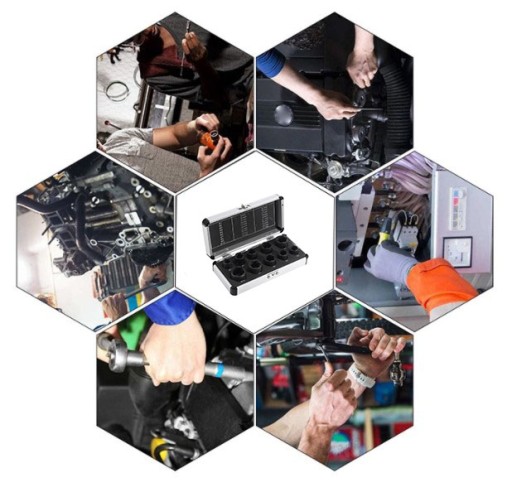 - Zestaw zawiera aż 10 rozmiarów nasadek, które wykorzystasz do śrub od 9 do 19 mm
