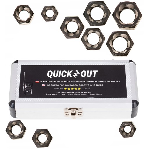 ZESTAW NASADEK DO USUWANIA ŚRUB Z OBROBIONĄ / USZKODZONĄ GŁÓWKĄ MARKI QUICK OUT