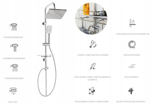 Deszczownia NYKS doskonale wpisuje się w nowoczesne trendy i kubistyczne formy, w naszym tegorocznym wzornictwie dominują kwadraty i prostokąty. Dodatkowe usprawnienia jak regulowane uchwyty montażowe, funkcjonalna półka na kosmetyki oraz eleganckie kapelusze deszczowni powalają cieszyć się wygodnym użytkowaniem, a także świetnym wyglądem.