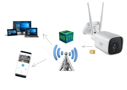Kamera posiada gniazdo na kartę sim oraz 2 anteny wzmacniające odbiór sygnału GSM. Umożliwia to zdalny dostęp do kamery używając sieci GSM 3/4G LTE.