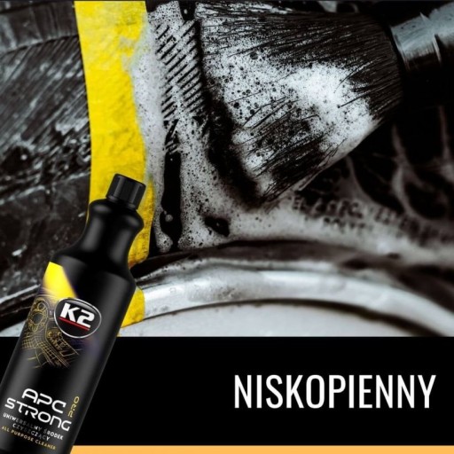 K2 APC STRONG PRO to potężny brat K2 APC Neutral Pro. Niezwykle silny, uniwersalny, wszechstronny i niskopienny produkt do czyszczenia wszystkich powierzchni na zewnątrz i we wnętrzu auta. Koncentrat, maksymalnie skoncentrowany na swoim celu. Poziom jego siły ujawnia się w zależności od stopnia rozcieńczenia.