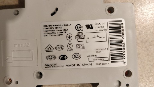 - Znamionowa zdolność wyłączania zwarć Icn: 15 kA