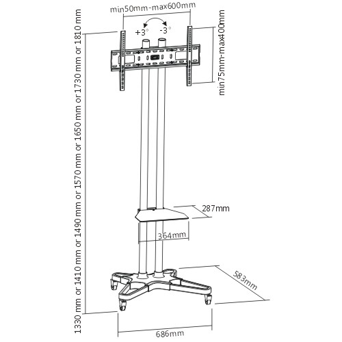 Wózek stand statyw stojak stolik podstawa XXL na TV monitor MAX 90" MAX 90KG czarny lub srebrny