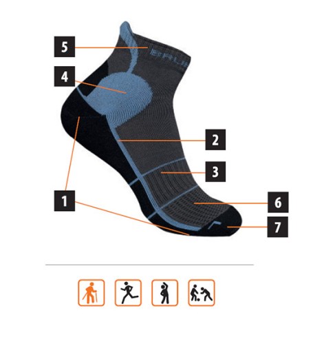 Zaawansowana technologia: technologia bezszwowa gwarantuje wyjątkowe dopasowanie do kształtu stopy i nogi, dwuwarstwowa konstrukcja dzianiny zapewnia szybszy odbiór wilgoci oraz skutecznie utrzymuje właściwą temperaturę – chroni przed przegrzaniem i wychłodzeniem.