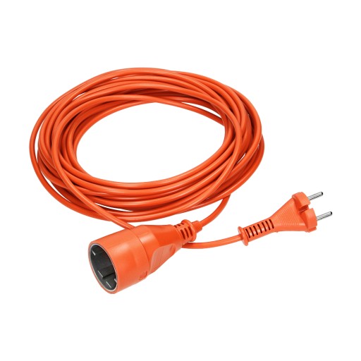 Przedłużacz ogrodowy o stopniu szczelności IP20, wykonany z PVC. Przedłużacz ma zalewane gniazdo i wtyczkę. Posiada 1 gniazdo (2P+Z) oraz giętki przewód OMY (klasa 5) bez uziemienia o długości 10 metrów. Nadaje się do zasilania odbiorników AGD/RTV w lekkich warunkach użytkowania.
