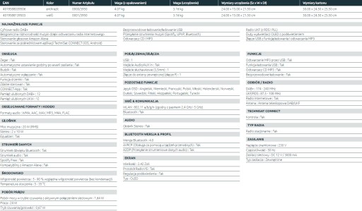 Z tym urządzeniem odbierzecie Państwo najnowsze stacje cyfrowego radia, jak również tradycyjne kanały z częstotliwości UKF. System RDS (Radio Data System) wyświetla na ekranie urządzenia dodatkowe informacje od nadawcy np. tytuł i wykonawcę aktualnie nadawanego utworu.