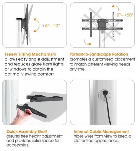 Wózek stand statyw stojak stolik podstawa personalizowana na TV monitor MAX 75" MAX 40KG ::