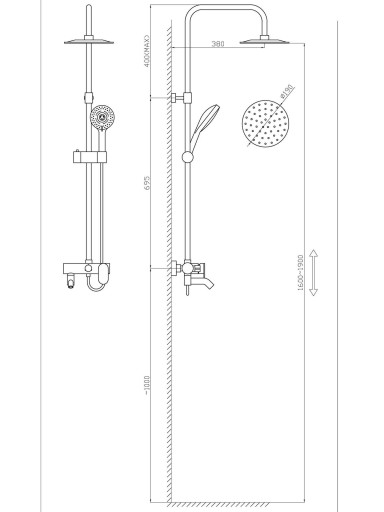 - wysokość prysznica: 160 - 190 cm