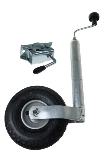 Koło podporowe pomaga przy manewrowaniu przyczepą oraz przy podpinaniu lub odpinaniu przyczepy z haka.
