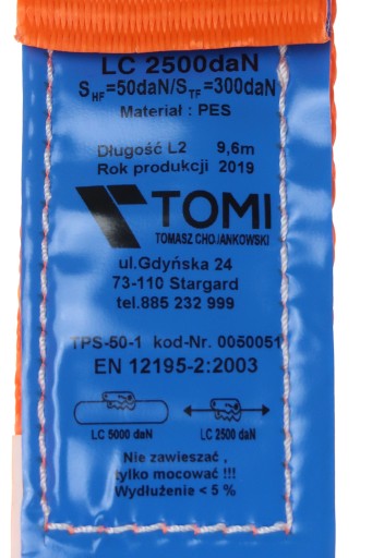 - Wytrzymałość pasa [na opasaniu]: LC=5000 daN