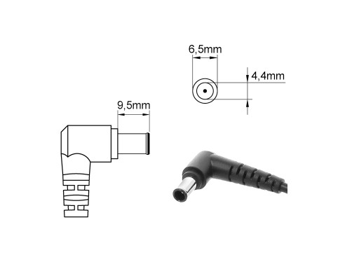 Wtyk: Średnica zewnętrzna 6.5 mm, średnica wewnętrzna 4.4 mm, długość 9,5 mm