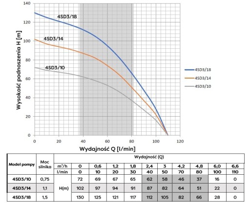 Anty-piaskowa pompa głębinowa 4SD 3-18 Omnigena to wielostopniowa pompa odśrodkowa, przeznaczona do tłoczenia czystej, zimnej wody nie zawierających elementów stałych szlifujących lub długowłóknistych. Przy studniach kręgowych i zbiornikach powinna być zastosowana rura osłonowa wymuszająca chłodzenie silnika. Zakres wydajności pomp 4SD jest w przedziale 80-360L/min co czyni je bardzo uniwersalnym rozwiązaniem dla domów jednorodzinnych jak i dużych gospodarstw rolnych.