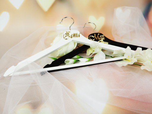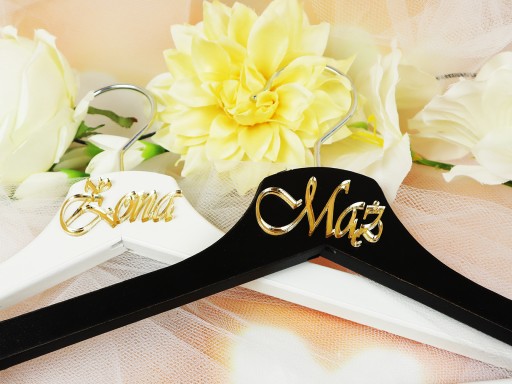 Komplet wieszaków ślubnych z lustrzanym napisem "Mąż", " Żona" lub "Pan Młody", "Panna Młoda".