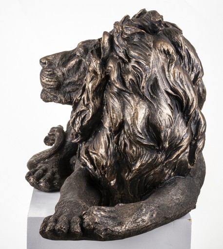 Figurka wykonana z poliresingu (mączki gipsowej połączonej z masą żywiczną) w kolorystyce złoto brązowej.