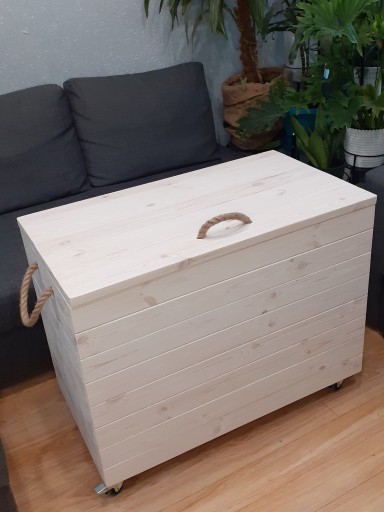 * rączki drewniane, metalowe albo ze sznurka jutowego (po bokach, ułatwiające przestawianie skrzyni i/lub w wieku dla łatwiejszego otwierania);