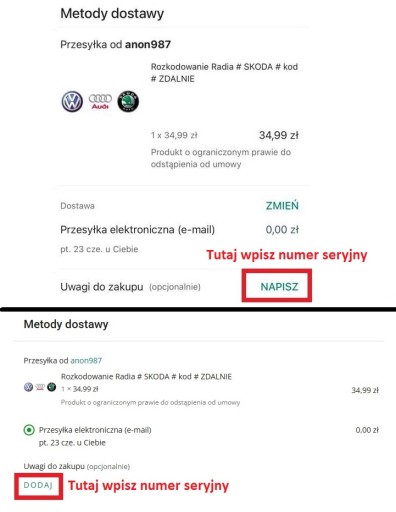 Podczas składania zamówienia numer seryjny podać na etapie: