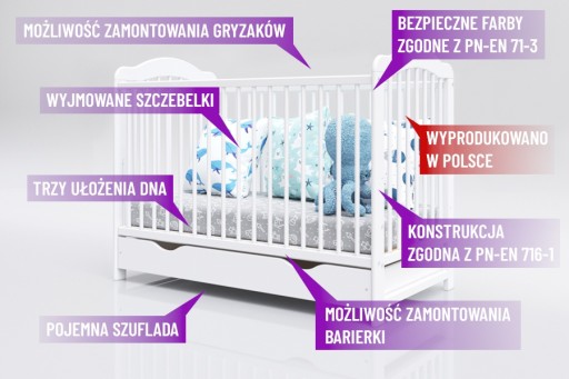Produkt Polski. Od ponad 26 lat produkujemy bezpieczne łóżeczka dla dzieci.