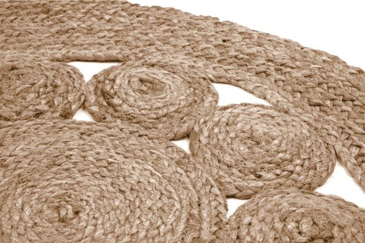 Ten cudowny i stylowy dywan znakomicie wpisuje się w trendy eko. Zachwyca prostym designem i cudownym naturalny kolor, który współgra z większością aranżacji wnętrz. Okrągły kształt dywanu oraz niebanalny projekt z kwiatem w środku tworzy ciekawy motyw dekoracyjny. Dywan rewelacyjnie ozdobi naturalne drewniane podłogi, panele, parkiety czy płytki. Dzięki stonowanej kolorystyce nie przytłoczy on wnętrza, ale nada mu elegancji.