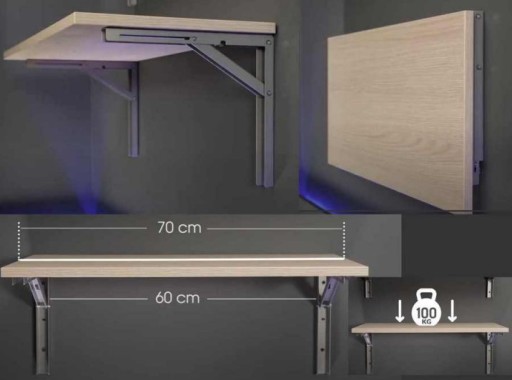 Maksymalna nośność blatu przy użyciu dwóch wsporników oddalonych od siebie na odległość 600mm wynosi 100kg.