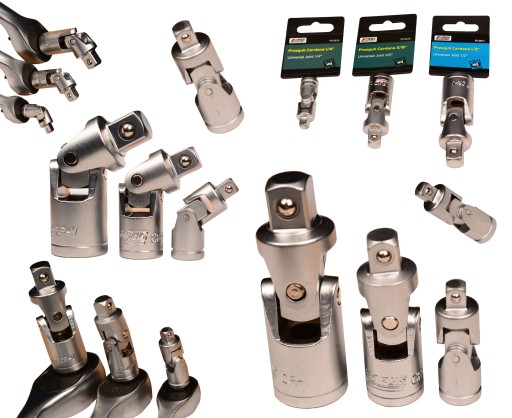 Przegub Cardana współpracuje z grzechotkami, przedłużkami i nasadkami.