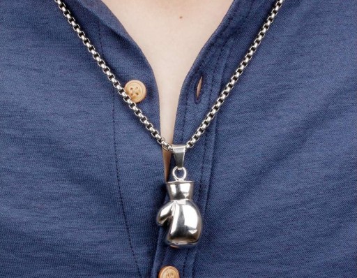 ✅ Elegancka, podłużna zawieszka w kształcie Rękawicy Bokserskiej w całości wykonana ze stali chirurgicznej 316L, często nazywanej stalą jubilerską lub stalą szlachetną.