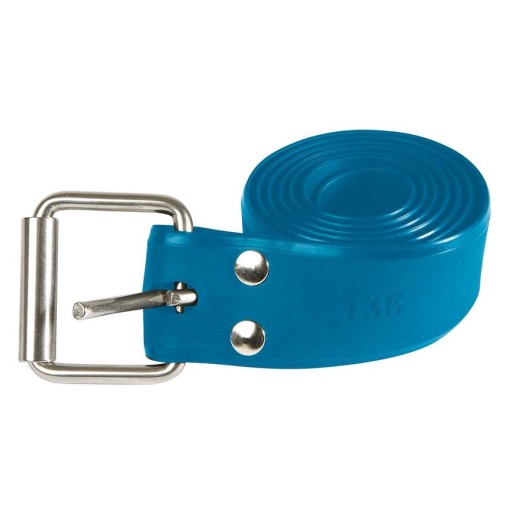 Elastyczny pas balastowy Marsylski z klamrą ze stali nierdzewnej, wzmocnionymi otworami i łatwym wkładaniem ciężarków. Długość 135 cm, kolor niebieski.