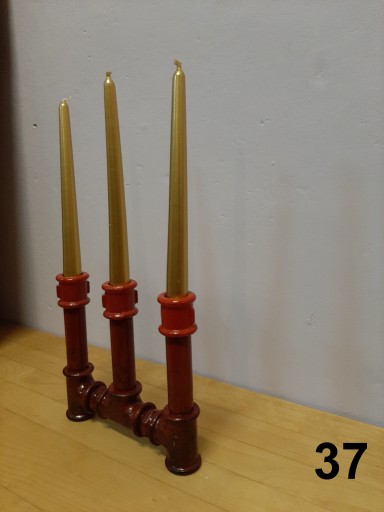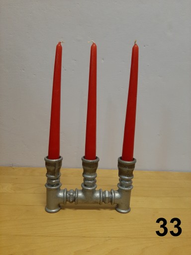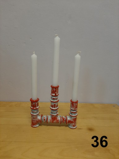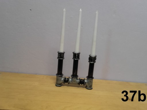 Przedmiotem aukcji jest ręcznie wykonany świecznik w stylu industrialnym.